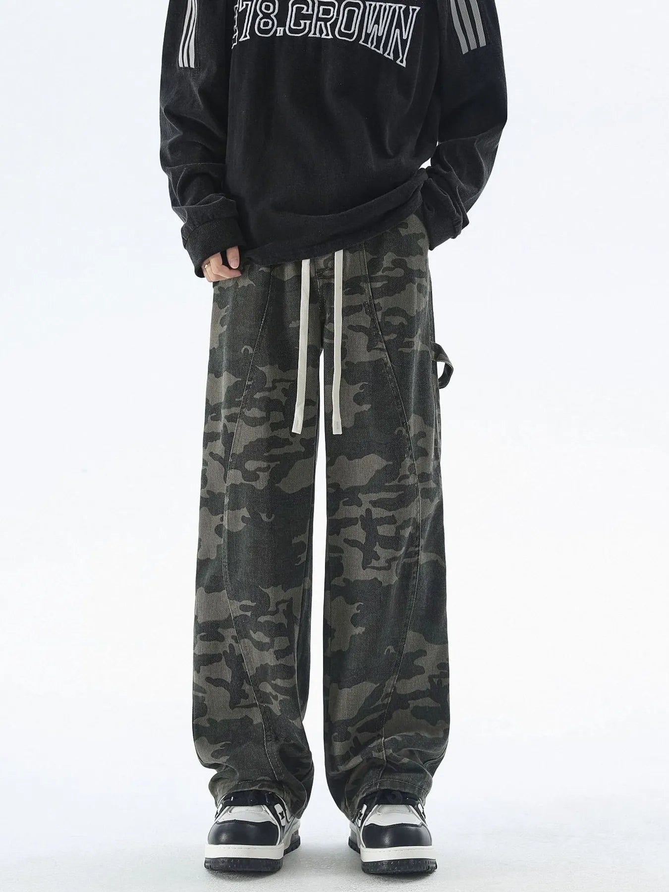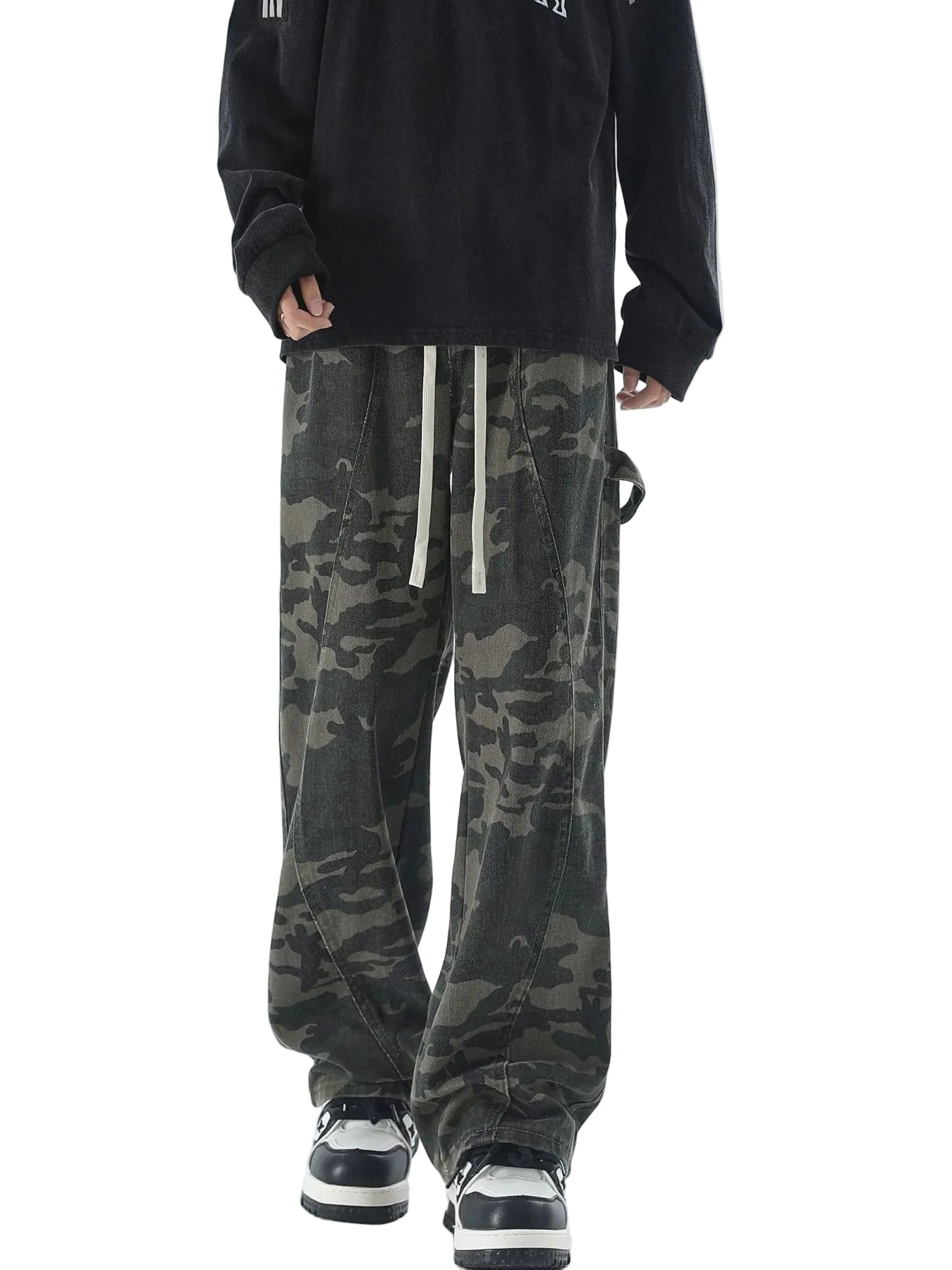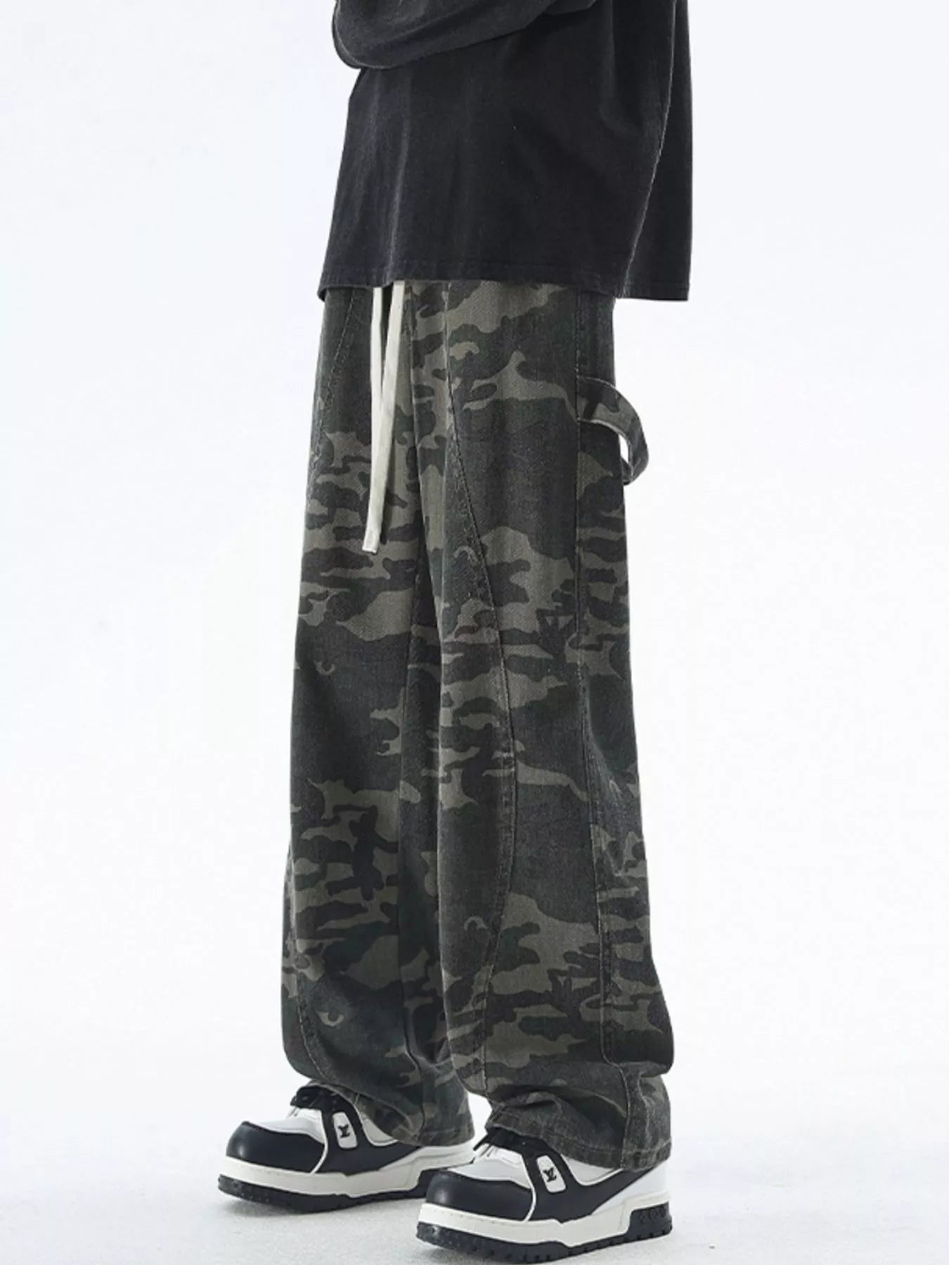 Zionel Men's Plus Size Camouflage Cargo Pants with Drawstring