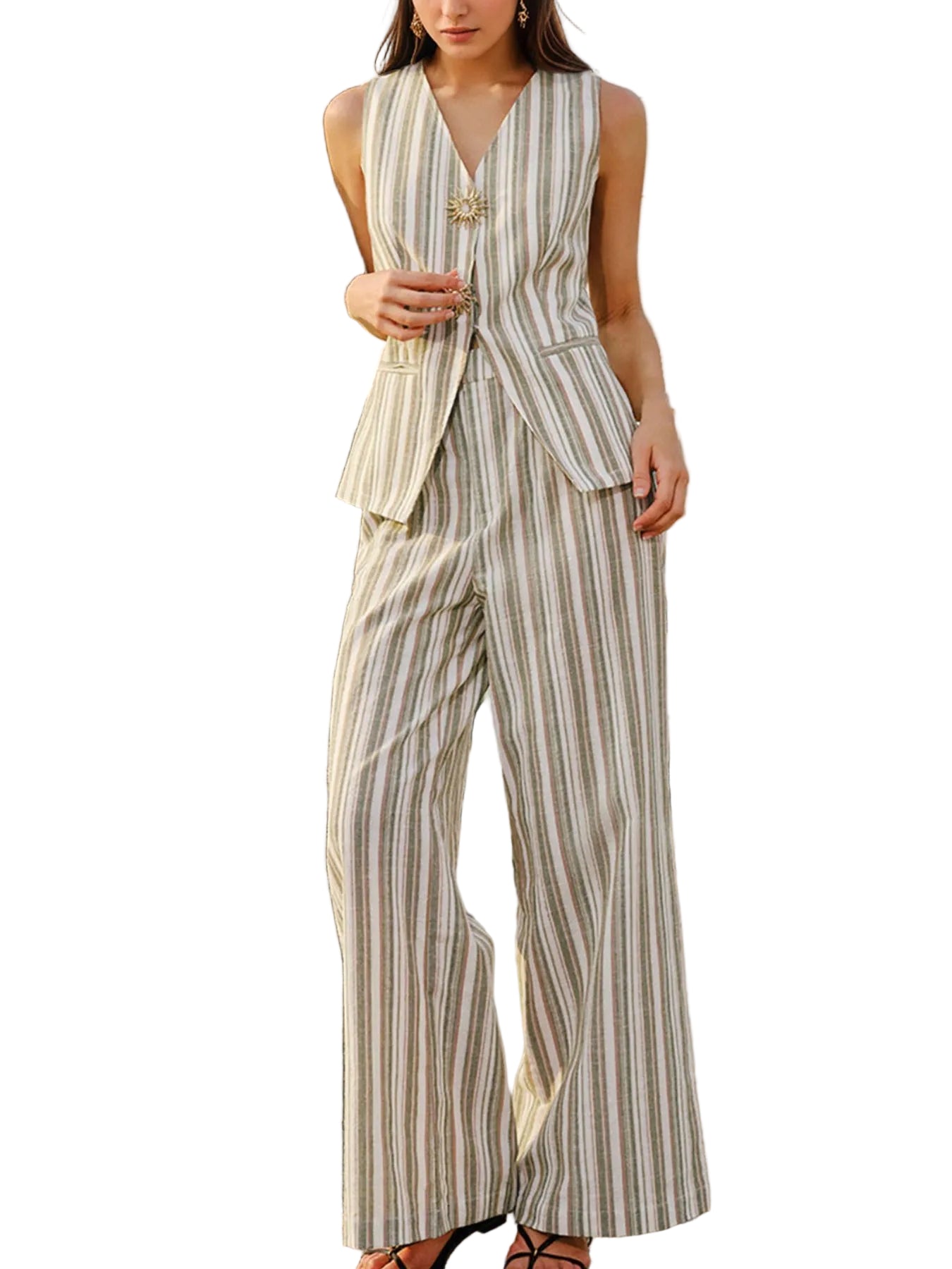 Viora Striped Sleeveless V-Neck Top and Pants Two-Piece Set