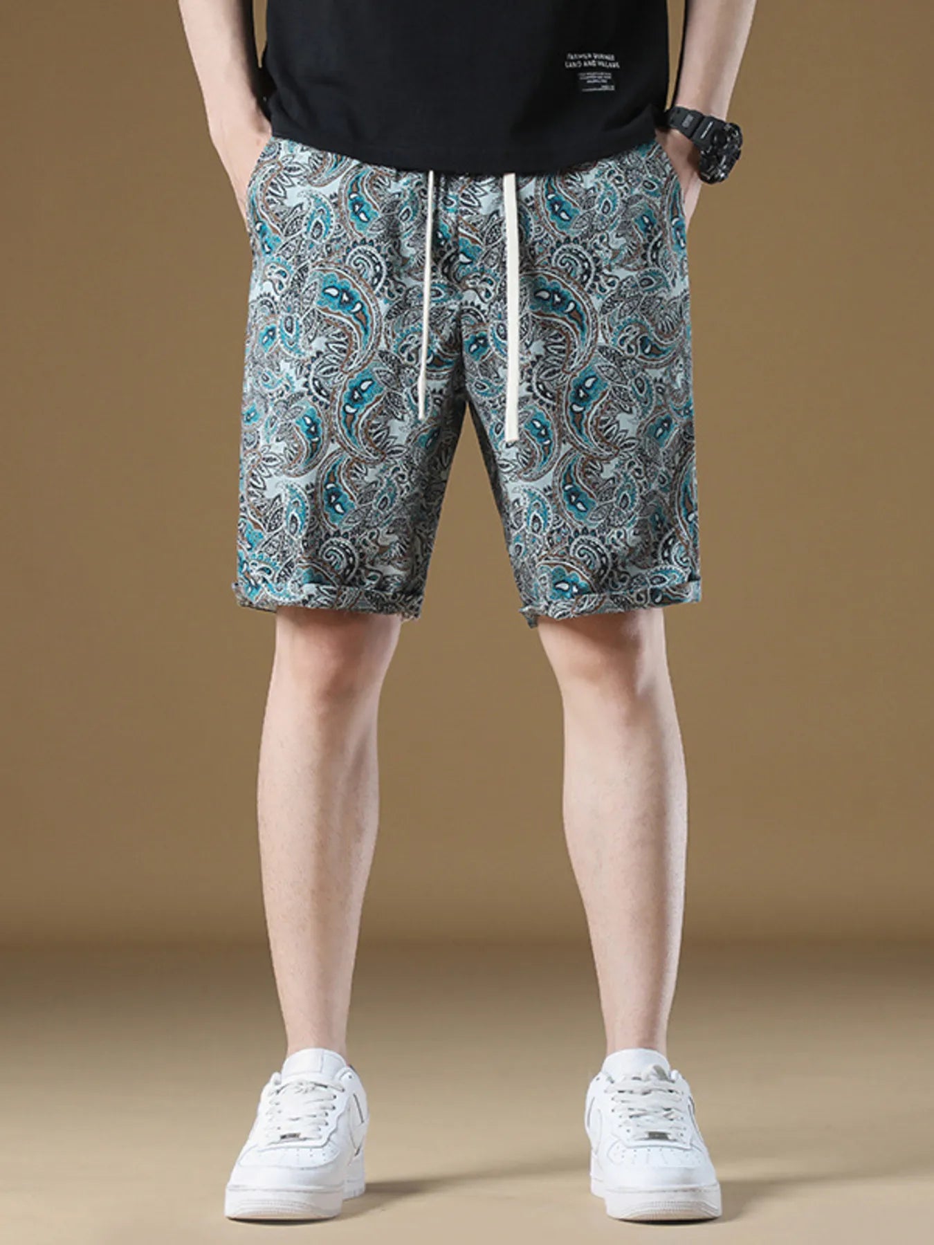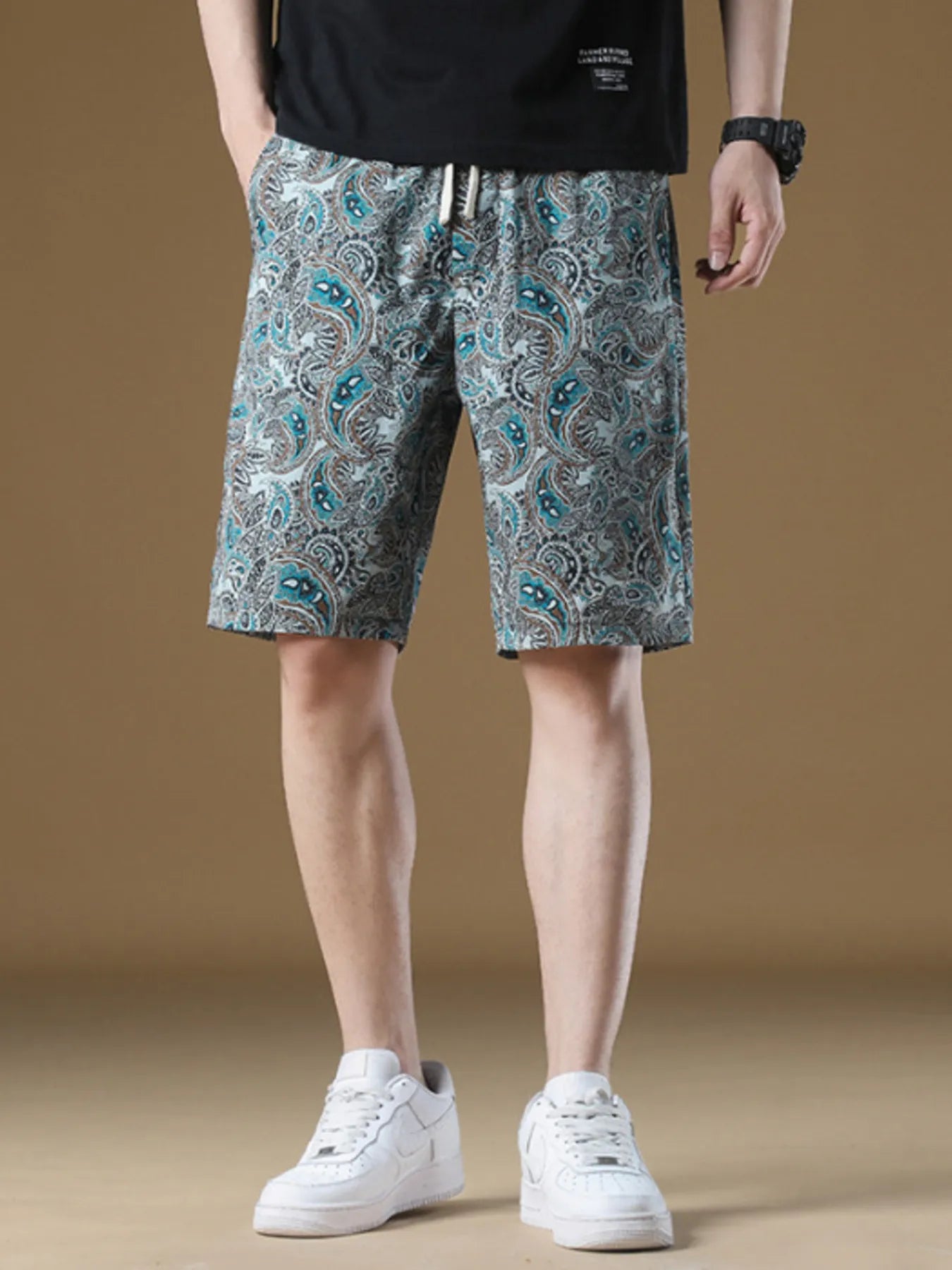 Levik Men's Plus Size Paisley Print Drawstring Beach Shorts